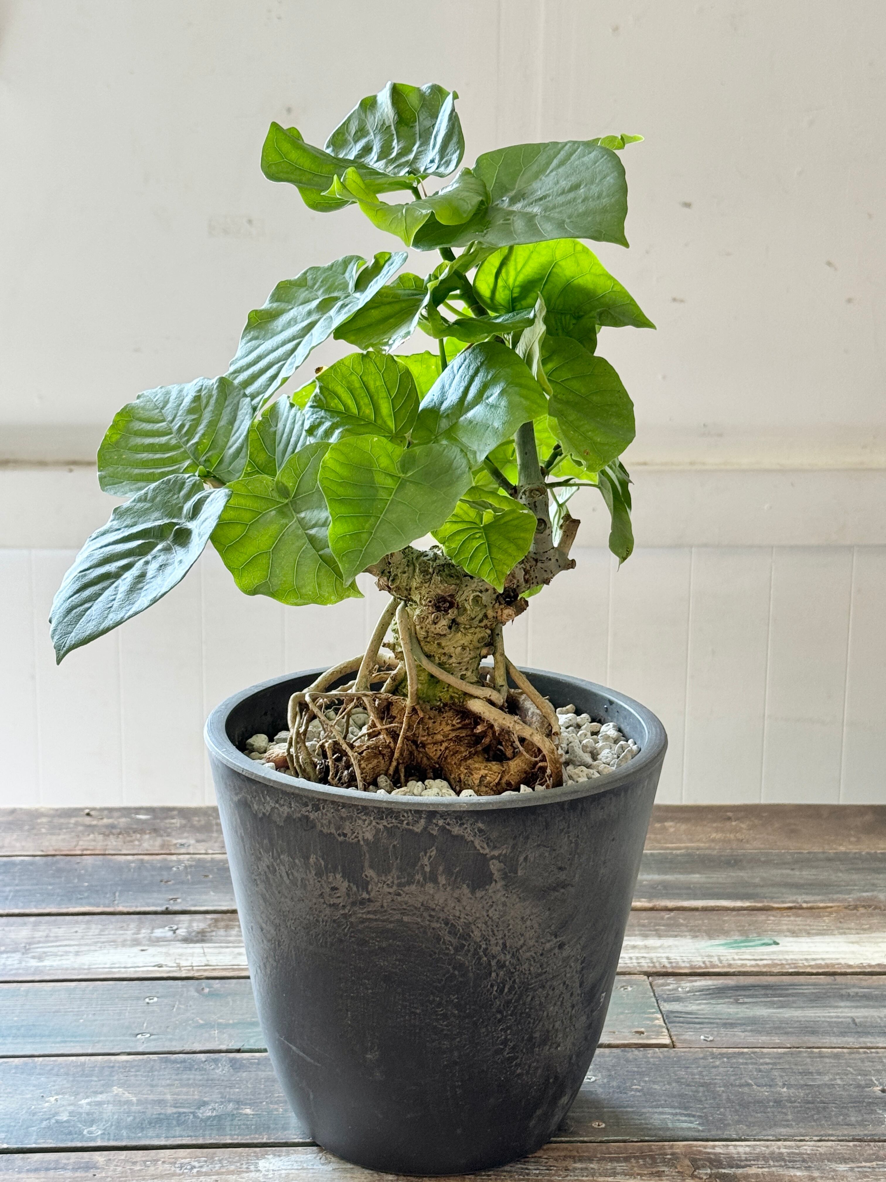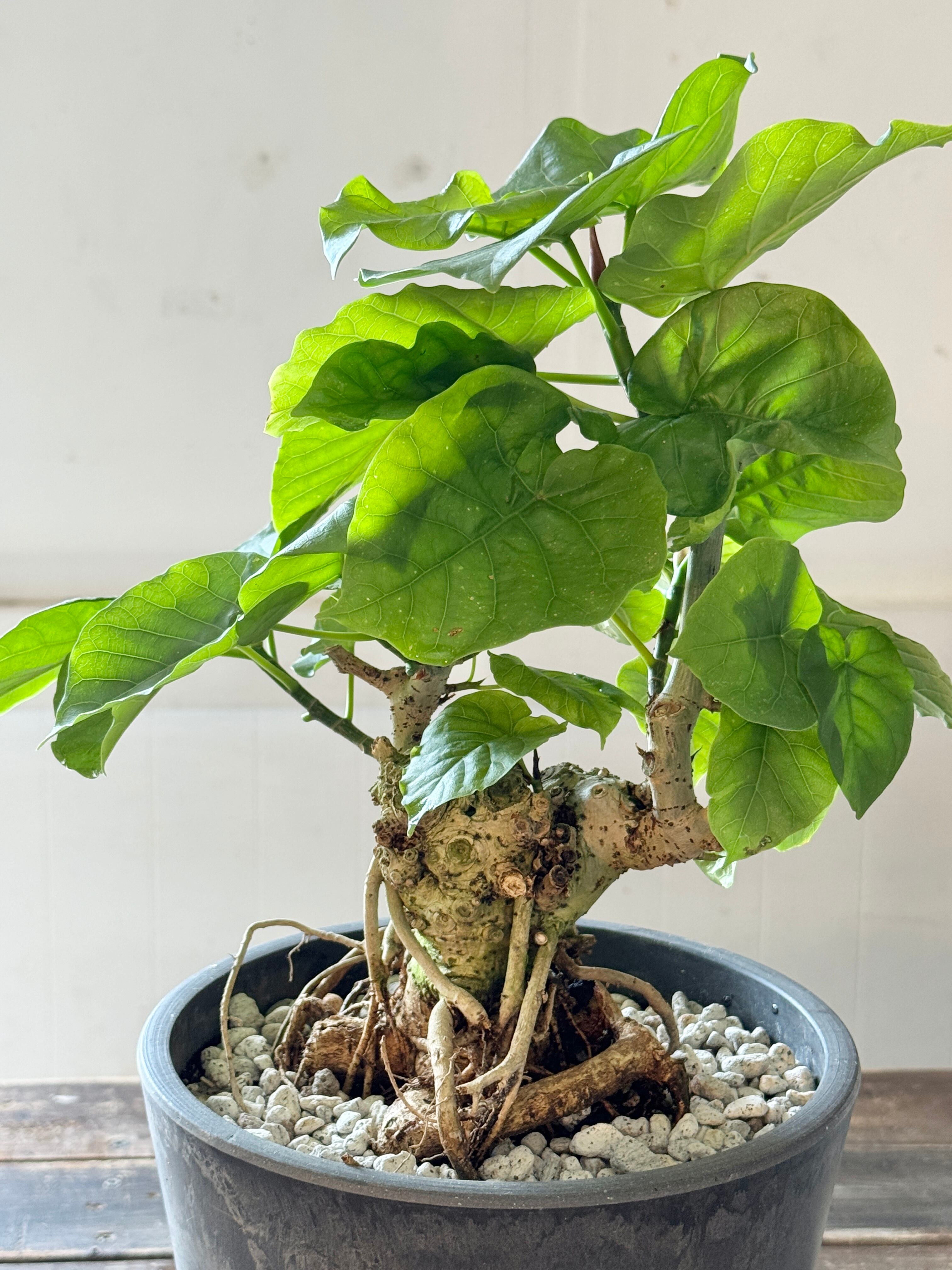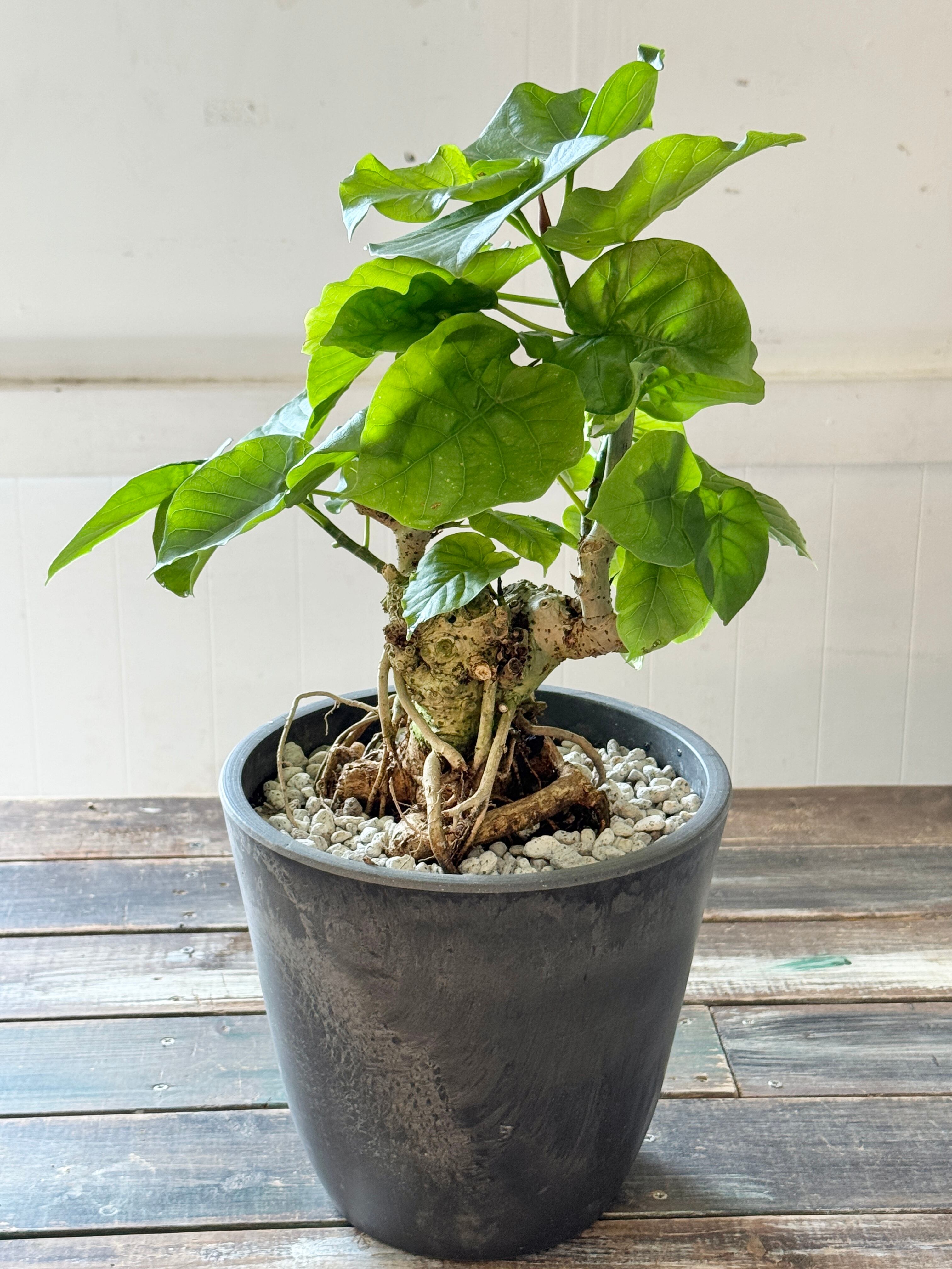 インテリアグリーンとして人気のウンベラータ。背丈を低く抑えてコンパクトな仕立てで長い年月をかけて独自なフォルムを醸し出すウンベラータコンパクト。